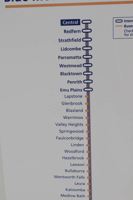 (最上面的Central是起點,要坐到倒數第2站的 Katoomba 才是藍山 )