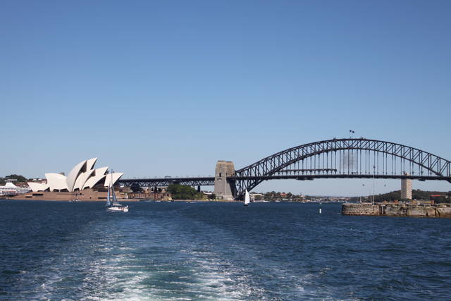 今天是好天氣呢! 陽光照得歌劇院閃閃發亮,海水波光粼粼